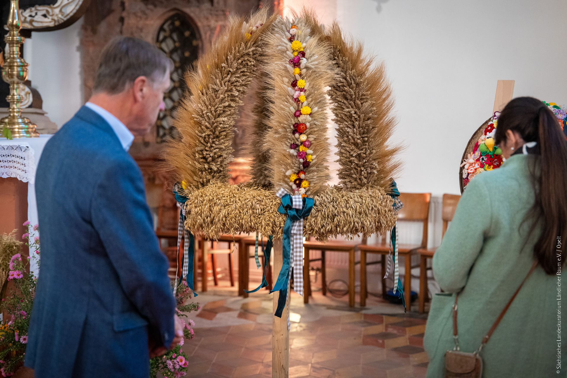 die traditionelle Erntekronen- und Erntekranzausstellung des Sächsischen Landfrauenverbandes e. V. in der Stadtkirche St. Wenceslai,