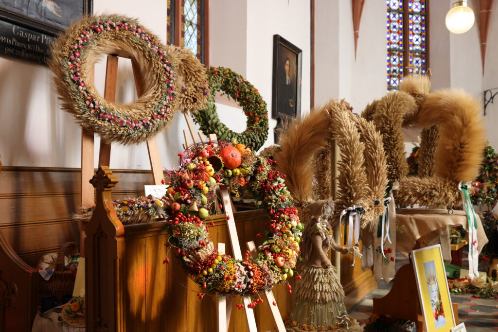 Mit großem handwerklichen Geschick und viel Herzblut gestalten Vereine, Familien und Einzelpersonen in ganz Sachsen jedes Jahr kunstvolle Erntekronen und -kränze als Ausdruck der Wertschätzung für die Landwirtschaft und die ländliche Kultur.